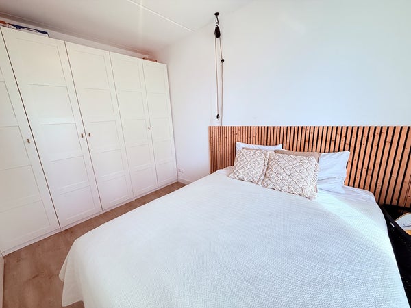 Hoogwaardige afwerkingen: houten vloeren, vlakke massief houten deuren, hoge plinten en gladde gepleisterde muren