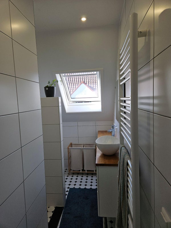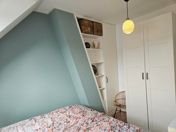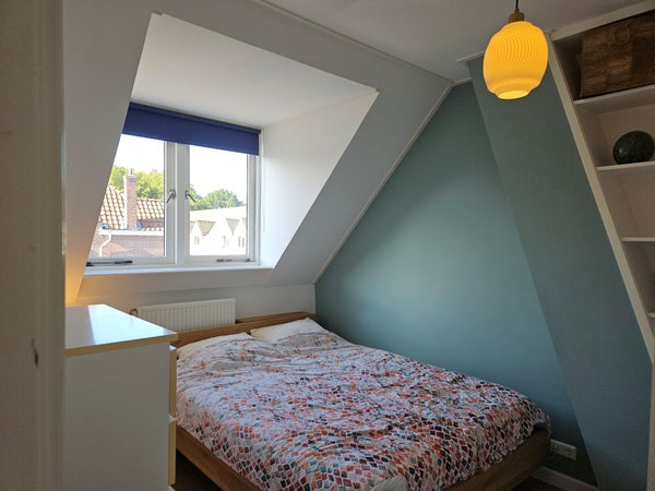 De overloop geeft toegang tot twee slaapkamers en de badkamer. De hoofdslaapkamer ligt aan de achterzijde van de woning en biedt voldoende ruimte voor een groot bed en kastruimte. De tweede slaapkamer bevindt zich aan de voorzijde en is ideaal als kinderkamer, werkkamer of logeerkamer. De badkamer is compact maar efficiënt ingedeeld met een douche, wastafel en toilet.