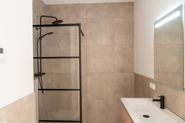 - Moderne badkamer met ruime inloopdouche (regendouche) en wastafel