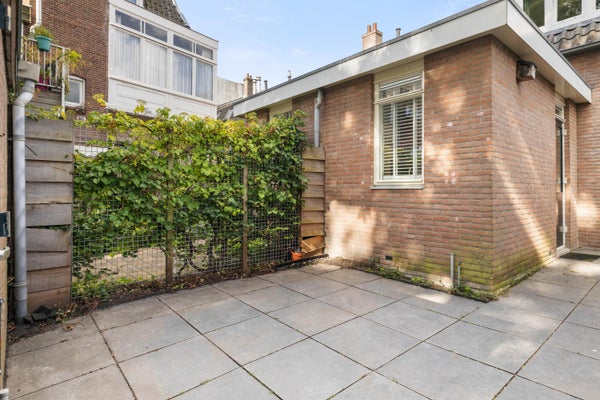 De achtertuin ligt op het oosten. de zon komt er dus mooi in op. Echter is de tuin vrij diep, dus zal er in de zomer gedurende de dag ook nog een zonnetje tevoorschijn komen. Achterin de tuin staat een stenen berging van ca. 5m2. Ideaal om fietsen in te stallen, aangezien de tuin ook een achterom heeft. De achtertuin grenst aan een verborgen hofje waar kinderen fijn kunnen spelen.