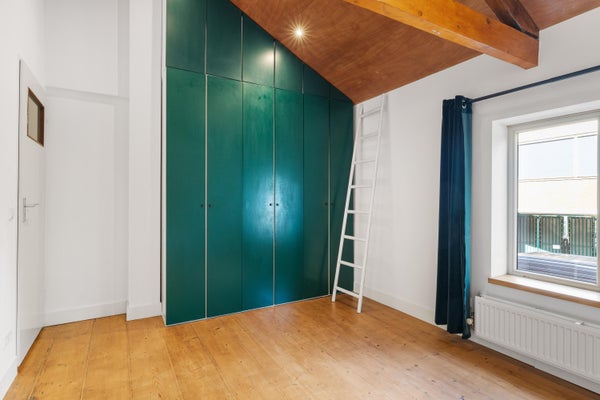 Vanuit de overloop heeft u toegang tot de twee slaapkamers en de badkamer. De slaapkamer aan de achterzijde heeft een extra hoog plafond die doorloopt tot aan de nik van de woning. De kamer beschikt ook over een op maat gemaakte inbouwkast waardoor u van de gehele hoogte gebruik maakt. Erg handig om veel spullen in op te bergen!