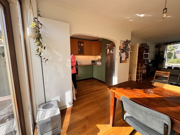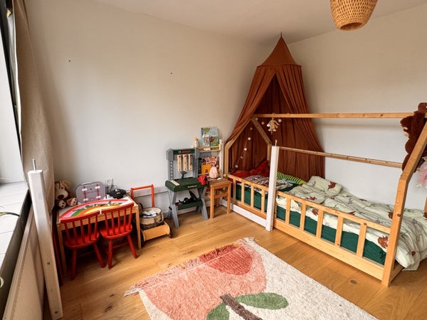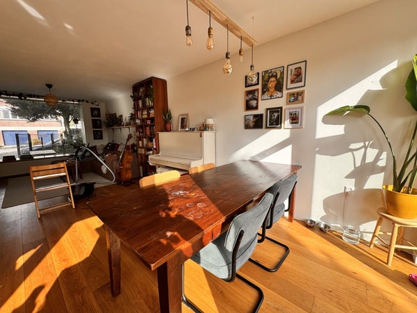 Deze ruime en lichte tussenwoning van maar liefst 131m², met 4 slaapkamers en de mogelijkheid voor een extra slaapkamer op zolder, ruime keuken en woonkamer en een onderhoudsarme voortuin met trampoline en een zonnige achtertuin met toegang tot de garage die achter de tuin staat. De woning heeft zonnepanelen.