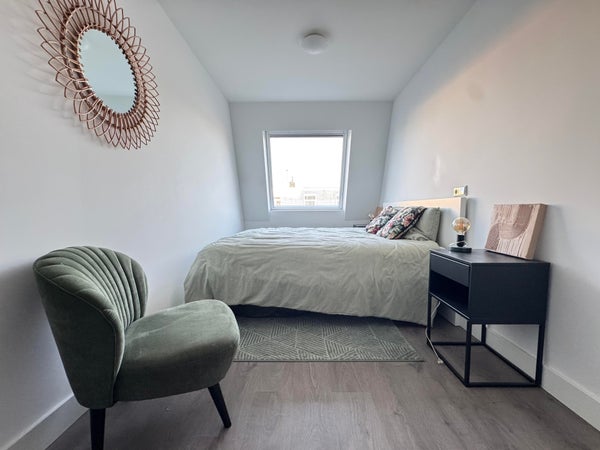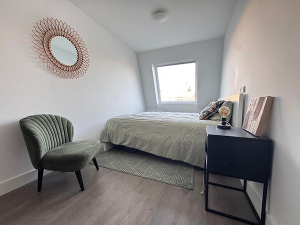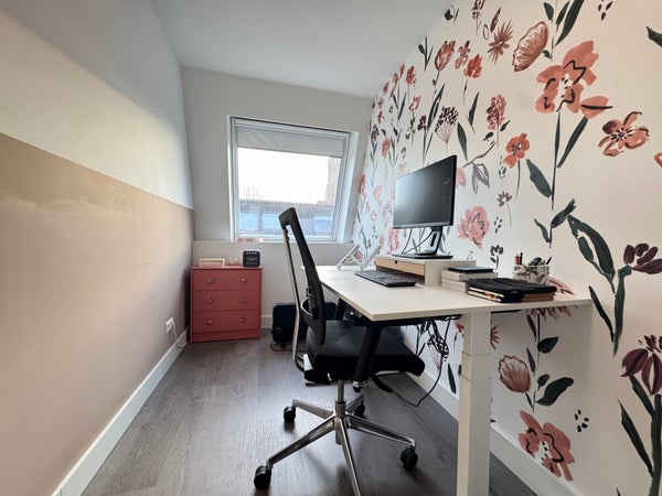 Op de zolderverdieping bevindt zich een derde slaapkamer en kleine study, perfect als werk – of hobbyruimte. Hier vind je ook de wasmachine en de droger, netjes weggewerkt en gemakkelijk bereikbaar.