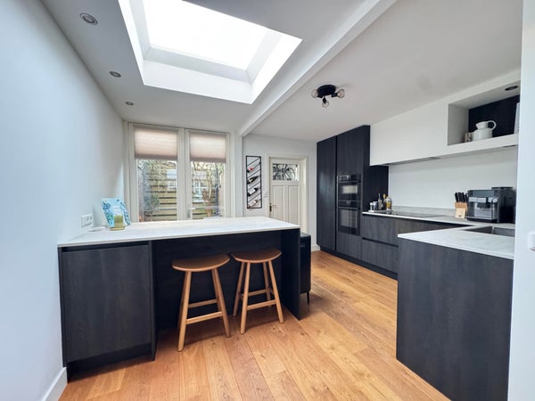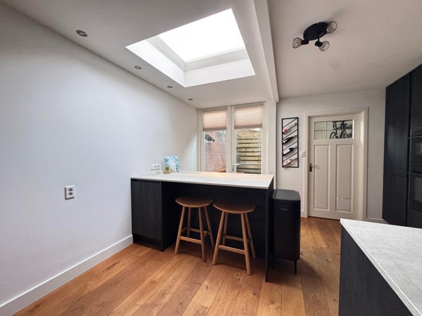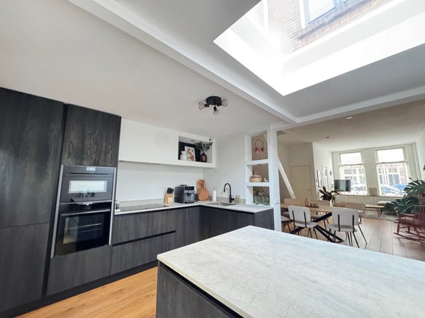 Bij binnenkomst tref je een ruime, lichte woonkamer, met aan zowel de voor – als achterzijde grote ramen die zorgen voor veel natuurlijk licht. De woonkamer loopt vloeiend over in de half open, moderne keuken voorzien van diverse inbouwapparatuur. Door het daklicht in de keuken geniet je hier de hele dag van een heerlijke lichtinval. Vanuit de keuken is er door middel van openslaande deuren toegang tot de fijne achtertuin waar je heerlijk kunt ontspannen na een drukke dag.