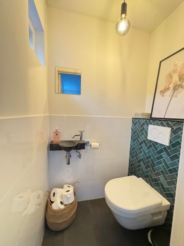 Achter de keuken bevindt zich een praktische berging met volop opbergruimte, ideaal voor voorraad, fietsen of huishoudelijke spullen. Ook is hier tevens een apart toilet aanwezig.