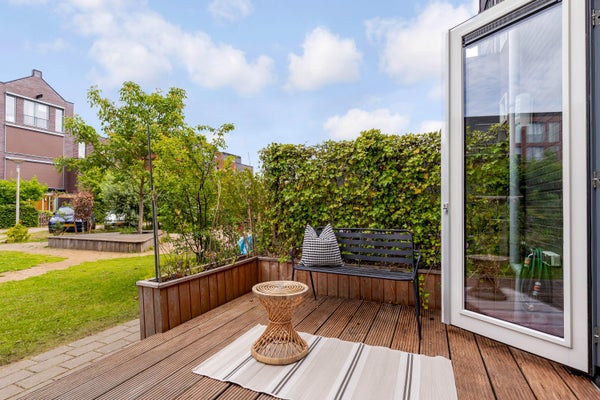 Op het privéterras aan de achterzijde geniet je van je koffie in de ochtendzon. De gemeenschappelijke binnentuin is ideaal voor kinderen om veilig te spelen, en op het riante dakterras op de bovenste verdieping heb je prachtige uitzichten over Utrecht en zon tot in de late uurtjes. Dankzij de ruimte en indeling is de woning zeer geschikt voor een groot gezin, maar ook voor een stel dat op zoek is naar een ruim opgezet huis met veel mogelijkheden.
