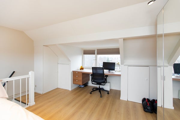 De trap naar boven brengt u naar de zolder, die uitstekend te gebruiken is als derde slaapkamer, thuiskantoor of hobbyruimte.