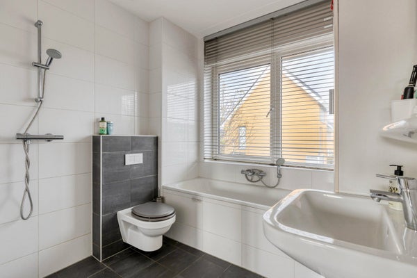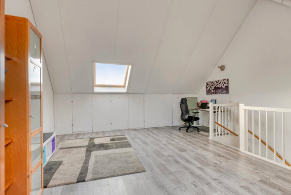 Via de voordeur kom je binnen in een ruime hal met toegang tot het toilet, de trap naar boven én de rest van de woning. Loop je door, dan bereik je aan de linkerkant het royale eet gedeelte, met daarachter de open keuken. Een fijne plek om samen te komen en gezellig te koken. Aan de achterzijde van de woning bevindt zich het lichte en comfortabele woongedeelte. Hier heb je via een deur direct toegang tot de mooie tuin, compleet met een gezellige loungehoek en een praktische berging. Op de eerste verdieping biedt de overloop toegang tot drie kamers en de badkamer. Rechts van de trap vind je de ruime master bedroom. Daarnaast ligt een kamer die nu in gebruik is als inloopkast, maar zich ook uitstekend leent als studeer- of extra slaapkamer. Aan de andere kant van de hal bevindt zich een derde slaapkamer, naast de complete badkamer met ligbad, toilet en wastafel. Een vaste trap leidt naar de zolderverdieping: een ruime en veelzijdige plek die ideaal is voor opslag, hobby’s of zelfs een werkplek of nog een extra slaapplek aan huis.