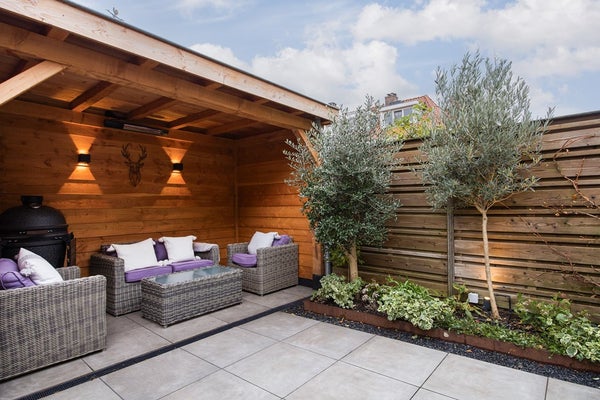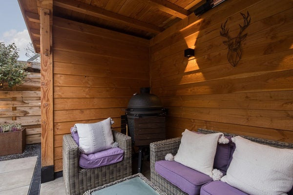 De voor- en achtertuin zijn verzorgd aangelegd. In de achtertuin vind je een schuur en een overkapping met heater, waardoor je ook op koelere dagen comfortabel buiten kunt zitten. Parkeren is mogelijk direct voor de deur.