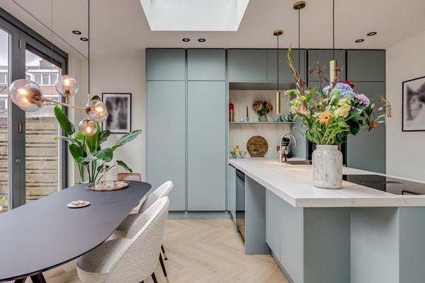 De moderne keuken in T-opstelling vormt het hart van de leefruimte en is uitgerust met hoogwaardige apparatuur: twee koel-vriescombinaties, een wijnklimaatkast, (stoom)oven, vaatwasser, inductiekookplaat met geïntegreerde afzuiging, Quooker en warmhoudlade. De woning is volledig ingericht, inclusief volledig ingerichte keuken en complete wooninrichting, zodat je zonder extra investeringen direct comfortabel kunt wonen.
