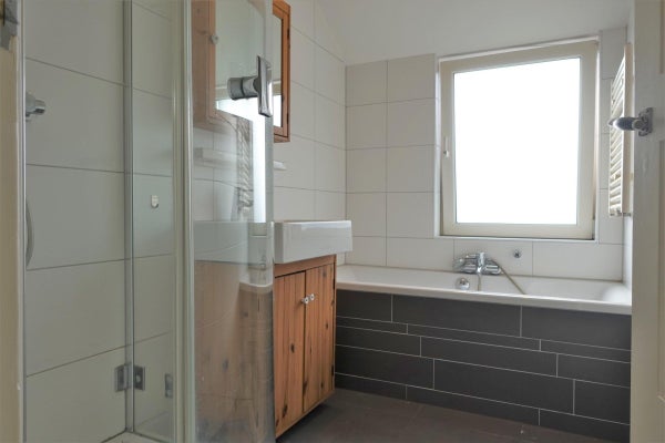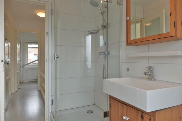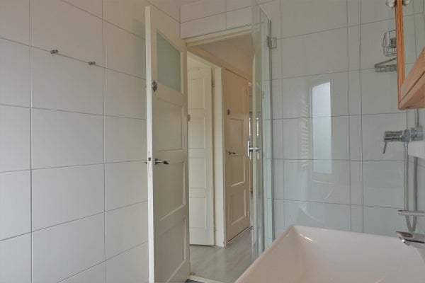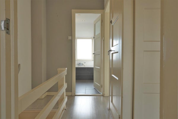 Via de trapopgang is de eerste verdieping te bereiken. De overloop biedt toegang tot de badkamer, een ruime slaapkamer aan de achterzijde, een aparte wc en een slaapkamer aan de voorzijde. De luxe badkamer is voorzien van een bad, een douche, een wastafel met meubel en een design radiator. Aan de voorzijde is een vaste trap gemaakt, waardoor de zolderverdieping eenvoudig te bereiken is.