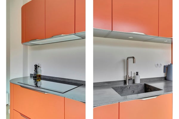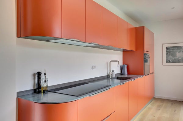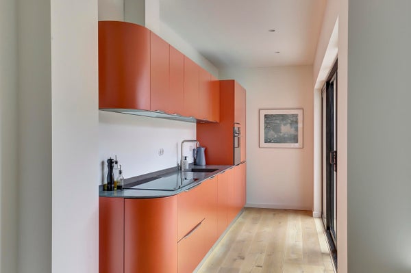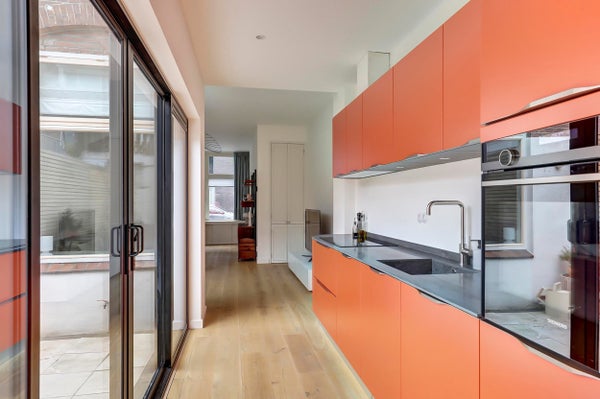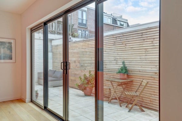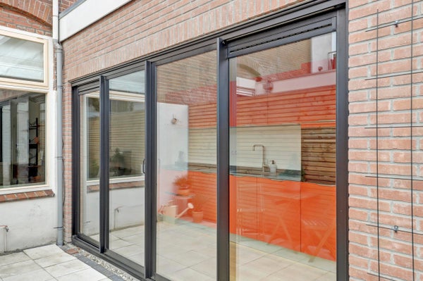 Entree, hal, apart zwevend toilet, lichte woonkamer met aan de achterzijde een stijlvolle moderne keuken voorzien van inbouwapparatuur waaronder een inductiekookplaat, combi-oven, vaatwasser, koelkast met vriezer. Ideale keuken voor wie van koken houdt. Via de openslaande schuifdeuren in de keuken toegang tot de zonnige achtertuin. Een heerlijke plek om de dag te beginnen met een kop koffie of om ’s avonds nog even buiten te zitten met vrienden en/ of gezin.
