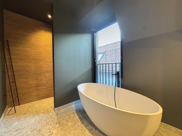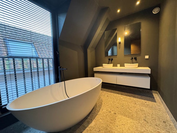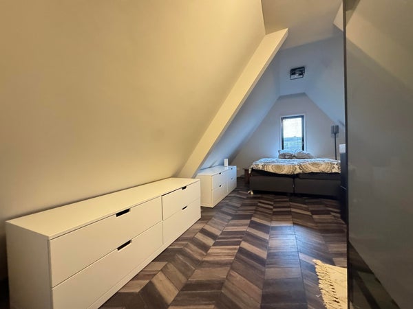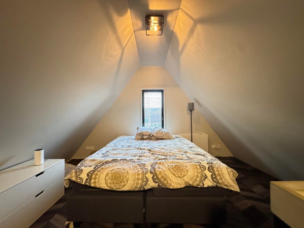 Vanuit de woonkamer/keuken is er toegang tot de eerste etage. Op de eerste etage de overloop een ruime moderne badkamer met vrijstaand ligbad, dubbele wastafel, aparte douche. Twee ruime lichte slaapkamers. Apart toilet. Trap naar zolderkamer waar wederom een heerlijke ruime slaapkamer is gecreëerd. Deze slaapkamer is voorzien van een ruime comfortabele regendouche en een wastafel.