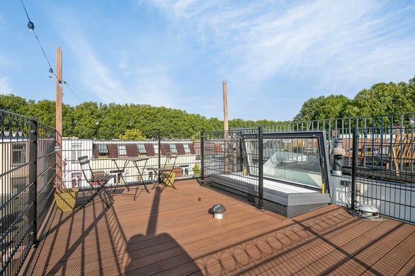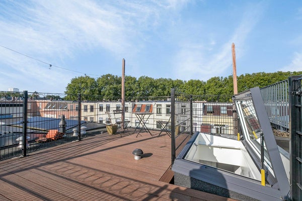 Via de trap in de woonkamer bereik je de eerste verdieping, waar zich de master bedroom, badkamer en tweede slaapkamer bevinden. De master bedroom is smaakvol ingericht met een groot design tweepersoonsbed, voldoende kastruimte en een eigen wastafel met meubel. De kamer is sfeervol dankzij de zichtbare oude balken. De moderne badkamer is uitgerust met een ruime douche, toilet, wastafel met meubel, spiegel met kast en een wandradiator. De tweede slaapkamer, heeft veel natuurlijk licht en is voorzien van een eigen wastafel. Op de tweede etage vind je de derde en vierde slaapkamer. De derde slaapkamer is royaal opgezet en beschikt over twee dakramen, een inbouwkast en een eigen wastafel. De vierde slaapkamer, eveneens voorzien van twee dakramen en biedt een ideale werkplek met een bureau. Tot slot is er het prachtige dakterras met schaduwnet, een watertappunt en verlichting. Een ideale plek om te ontspannen en te genieten van de zon en het uitzicht.