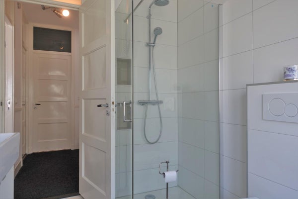 Via de trapopgang is de overloop te bereiken met toegang tot de badkamer, de drie slaapkamers en de trapopgang naar de 2e verdieping. De badkamer is aan de achterzijde van de woning gesitueerd en is voorzien van een bad, een douche, een wc en een enkele wastafel met meubel. Er zijn twee ruime slaapkamers die beide zijn voorzien van twee persoons bedden en een kleinere slaapkamer die zich aan de voorzijde bevindt.