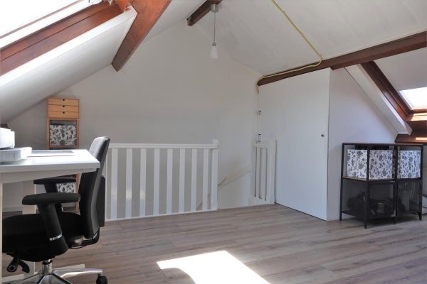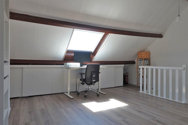 Via een vaste trap is de tweede verdieping te bereiken. Hier bevinden zich de wasmachine en berging. Tevens is hier een ruime zolderkamer met bergruimte.