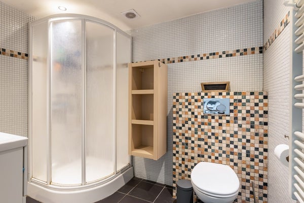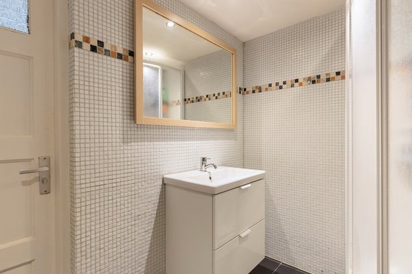 Op de begane grond vind je daarnaast een handige bijkeuken voor extra opslag en een moderne badkamer met inloopdouche, wastafel en toilet.