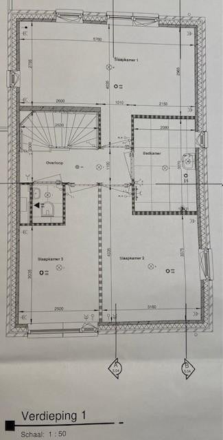 Op de eerste verdieping biedt een overloop toegang tot drie slaapkamers, de badkamer, een separaat toilet en de trap naar de tweede verdieping.
