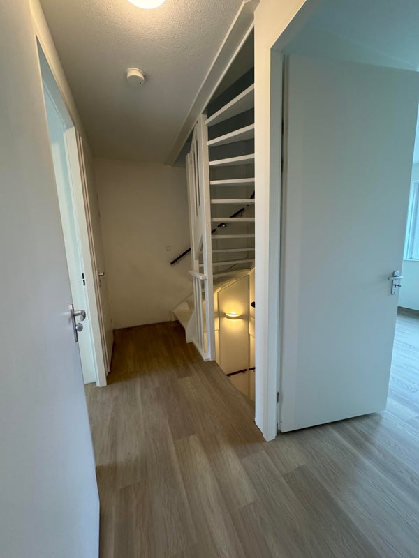 Op de eerste verdieping biedt een overloop toegang tot drie slaapkamers, de badkamer, een separaat toilet en de trap naar de tweede verdieping.