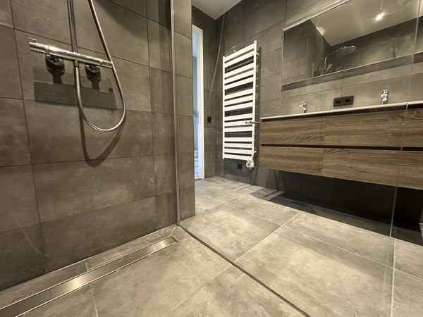 Overloop. Een grote masterbedroom, comfortabele badkamer met riante inloopdouche, dubbele wastafel met meubel. Separate sanitaire ruimte met wandcloset. Twee ruime slaapkamers gesitueerd aan de achterzijde.