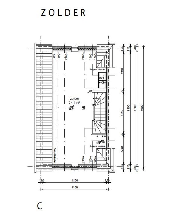 Tweede verdieping: ruime zolder van ongeveer 25 m².