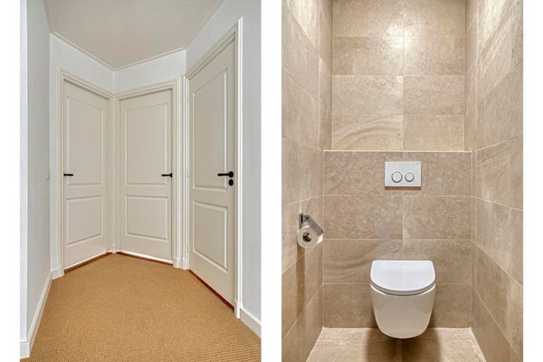 Daarnaast vind je op deze verdieping een gerenoveerd, separaat toilet en een volledig vernieuwde, volledig betegelde badkamer, uitgerust met een luxe inloopdouche met regendouche en een vrijstaand ligbad.