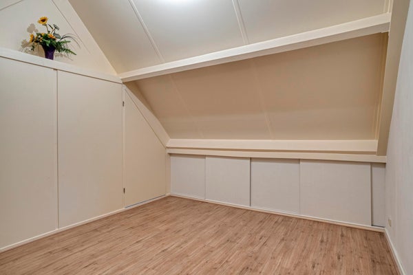 Ook de tweede verdieping biedt volop ruimte. De overloop geeft toegang tot twee grote kamers, uitstekend te gebruiken als slaapkamer, werkkamer of extra bergruimte.