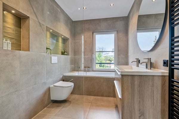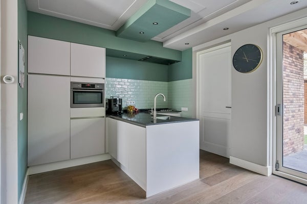 De lichte woonkamer met houten vloer, erker en schuifpui naar het terras voelt warm en ruim aan, De moderne keuken met kookeiland en inbouwapparatuur vormt het hart van het huis. Op de eerste verdieping vind je drie slaapkamers en de prachtige nieuwe badkamer met ligbad, inloopdouche en dubbele wastafel. De tweede verdieping biedt nog een royale slaapkamer, extra bergruimte en plek voor wasapparatuur.