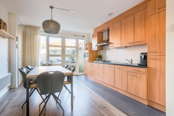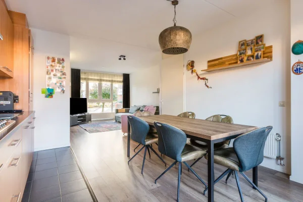 Dit verzorgd woonhuis ligt in een jonge wijk aan de rand van De Kelen. Het biedt een lichte woonkamer met openslaande terrasdeuren en uitzicht op de speelweide. De gezellige leefkeuken is compleet uitgerust met inbouwapparatuur. Op de eerste verdieping komen de overloop en de twee ruime slaapkamers samen, waarbij de grootste gemakkelijk kan worden opgesplitst. De badkamer is volledig betegeld en heeft zowel een douche als wastafel. De tuin van ongeveer 12 meter diep biedt privacy, met een terras en berging. De woning heeft 102 m² woonoppervlak, met een energielabel A, en bevindt zich dichtbij voorzieningen zoals scholen en het openbaar vervoer. Beschikbaar vanaf 1 december 2025.