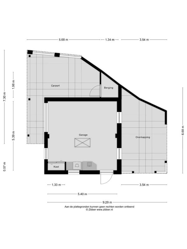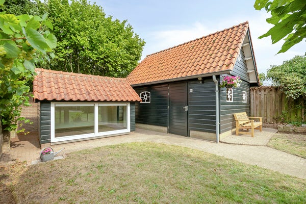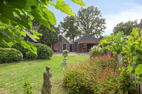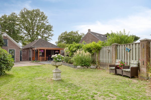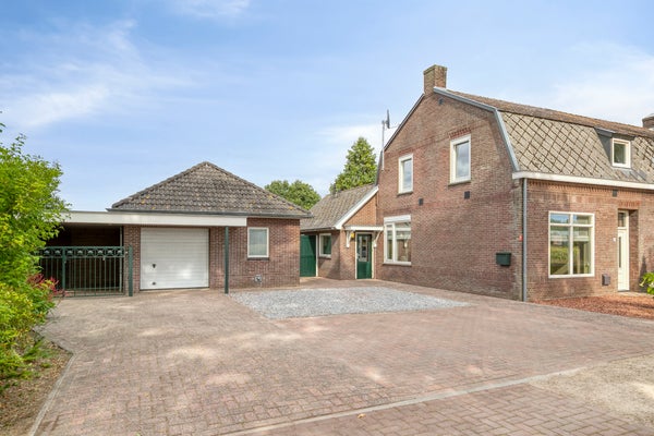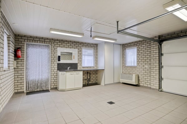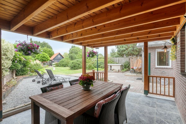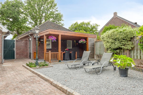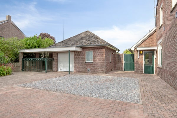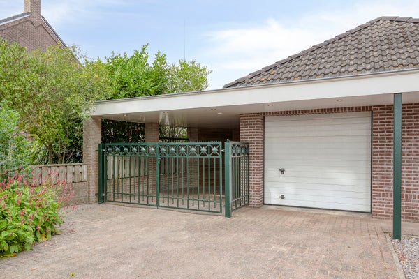 - Vrijstaande garage met carport en overkapping.