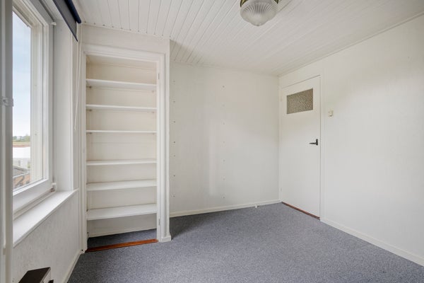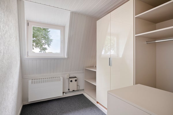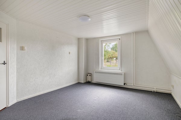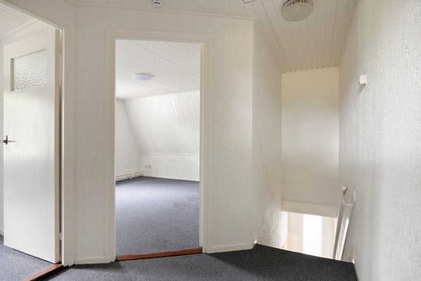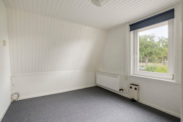 Vanuit de overloop zijn 3 slaapkamers bereikbaar. Middels een vlizotrap is een bergzolder bereikbaar. Op 1 van de slaapkamers is een vaste kast aanwezig. De vloer op deze verdieping is v.v. tapijt. De wanden zijn afgewerkt met stucwerk (granol). De plafonds zijn v.v. schroten. De kozijnen zijn van kunststof en van hout en v.v. dubbel glas.