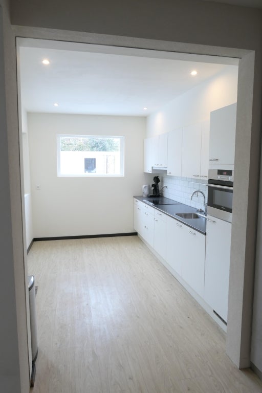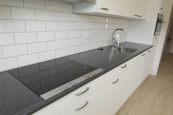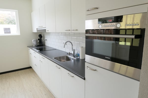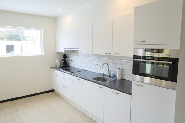 Complete, moderne keuken, voorzien van o.a. vaatwasmachine, combi-oven, inductiekookplaat en koelkast.