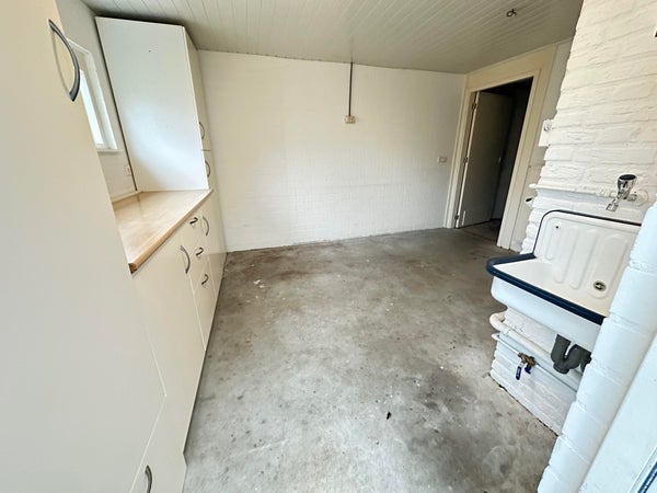 Garage te openen middels roldeur. De garage geeft toegang tot ruime berging met kastenopstelling.