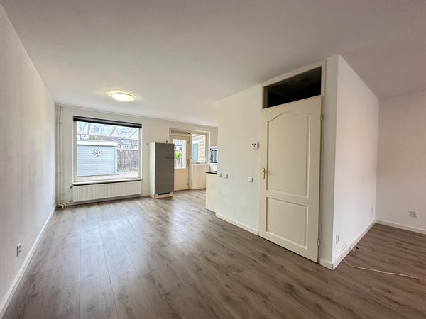 Middels voortuin toegang tot de hal van de woning. Entree in de woning met doorgang naar de woonkamer. De woonkamer geeft aan de achterzijde toegang tot de halfopen keuken. De keuken is voorzien van de volgende inbouwapparatuur: vaatwasser, koelkast, vriezer, oven, afzuigkap en inductie kookplaat. Aan de achterzijde geeft de keuken toegang tot de tuin met overkapping.