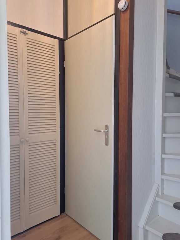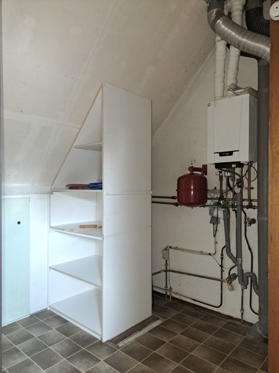 Overloop met bergruimte en de opstelling van de CV-ketel en de wasmachine. Verder is hier een vierde slaapkamer met Velux-raam.