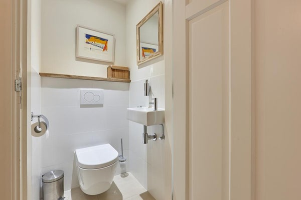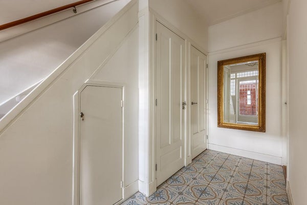 Entree met originele details, trap naar eerste verdieping. Separaat toilet met fonteintje, voorraad kelder. De ruime woonkamer met sfeervolle elektrische haard beschikt over veel natuurlijk licht dankzij de grote raampartijen. De eetkamer kan worden afgesloten middels karakteristieke en suite deuren met ingebouwde kasten en biedt toegang tot de gezellige tuin (NW) met schuurtje. De moderne open keuken in lichte kleurstelling beschikt over alle benodigde apparatuur zoals inductie kookplaat met afzuigkap, ruime combi-oven, vaatwasser en koelkast met aparte vriezer.
