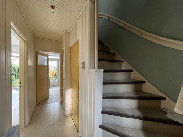 Bij binnenkomst via de hal vind je een apart toilet en toegang tot zowel de lichte woonkamer als de keuken. Beide ruimtes geven toegang tot de ruime achtertuin, ideaal voor zomerse avonden of ontspanning in het groen.