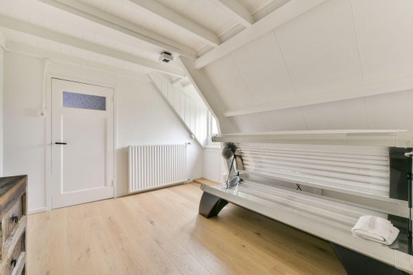 Middels de houten trap op de overloop bereikt u de tweede verdieping. Hier is een bijzonder ruime, veelzijdige ruimte van ca. 30 m2 groot. Deze is ideaal in te richten als hobby-, of sportzolder. Daarnaast is er toegang tot 2 slaapkamers, beiden voorzien van een dakkapel met veel lichtinval en fraai uitzicht. Verder is er op deze verdieping een wasruimte.