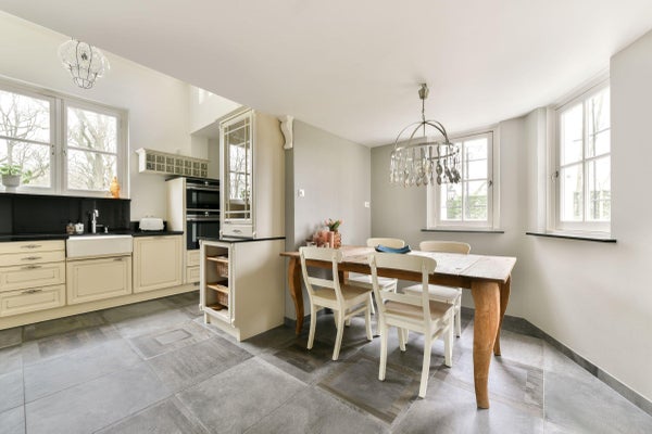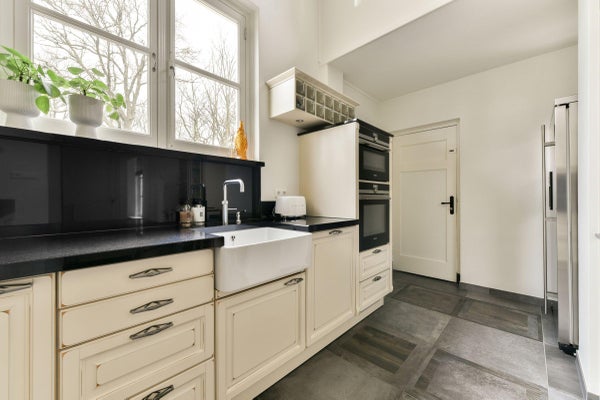 De riante en luxe woonkeuken kunt zowel vanuit de hal als vanuit de eetkamer bereiken. Hier is ook ruimte voor een eettafel met stoelen, de ideale setting voor bijvoorbeeld het ontbijt of een gezellige borrel. De keuken is volledig uitgevoerd in landelijke stijl en voorzien van allerhande inbouwapparatuur zoals een inductiekookplaat met afzuiger, een vaatwasmachine, oven en combimagnetron. Tevens is er een deur naar een ruime, droge en koele (wijn)kelder. De exclusieve stenen vloer is doorgelegd in de ruime en praktische bijkeuken. Hier vindt u een separaat toilet en toegang tot een heerlijke ruime en lichte tuinkamer, met openslaande deuren naar de tuin en een spiltrap naar een speelse (logeer)vide. Deze ruimte is mogelijk ideaal in te richten als verblijf voor gasten, wat oudere kinderen, een au pair of een werkkamer/praktijk aan huis.