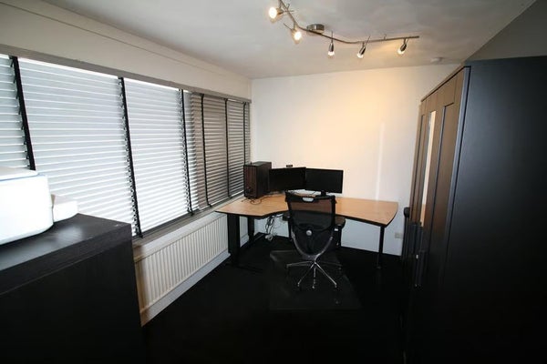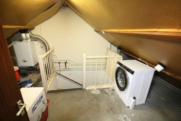 Met een vaste trap bereik je de zolderverdieping. Hier bevinden zich de cv-installatie en de aansluitingen voor de wasmachine en droger. Daarnaast is er een extra hobby- of bergruimte, geschikt als werkruimte of opslag.