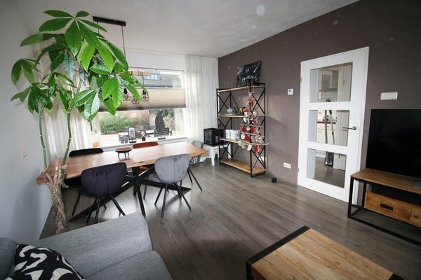 Via de hal met trapopgang bereik je het toilet met fontein, de meterkast, de woonkamer en keuken. De woonkamer is licht en ruim opgezet en biedt voldoende plaats voor een zit- en eethoek. De keuken is voorzien van diverse apparatuur, waaronder een inductiekookplaat, vaatwasser en koelkast.