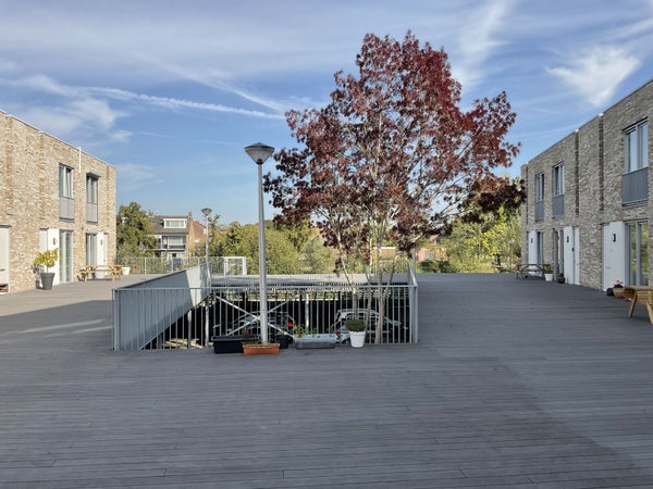 De entree bied je toegang tot de berging met wasmachineaansluiting en tot de afgesloten priv' parkeerplaats. Via de trap kom je in de mooie living (split-level) met schuifpui. De luxe open woonkeuken is voorzien van een vaatwasser, 4-pits gaskookplaat, RVS afzuigkap, koelkast en een combimagnetron.