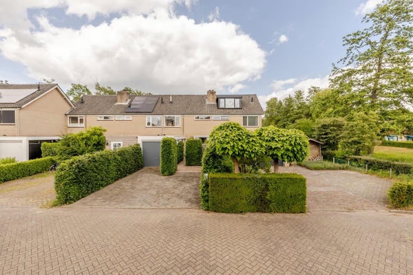 De auto parkeren doe je eenvoudig op de lange oprit voor de woning, waar meerdere auto's hun plek kunnen vinden. Via de voordeur stap je binnen in de hal met toegang tot de meterkast, het toilet, de garderobe en de woonkamer. De zithoek en het eetgedeelte vormen samen een prettig, ruim geheel dat meteen een huiselijke sfeer uitstraalt. De grote schuifpui aan de achterzijde laat veel daglicht binnen en biedt directe toegang tot de tuin. De aangrenzende keuken is functioneel ingericht met onder andere een elektrische kookplaat, afzuigkap, koelkast en een dubbele spoelbak. Tijdens het koken kijk je uit over de tuin dankzij het brede raam.