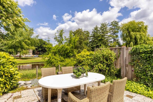 De diepe achtertuin, gelegen op het noorden, is een heerlijke plek om te ontspannen. Je kijkt uit over het water en kunt kiezen uit meerdere zitplekjes dankzij twee terrassen. Aan de voorzijde beschikt de woning tevens over een riante, zonnige voortuin op het zuiden met een terras dat veel privacy biedt. De garage aan de voorkant is voorzien van verwarming en elektra en is zowel geschikt voor parkeren als voor opslag of een hobbyruimte.