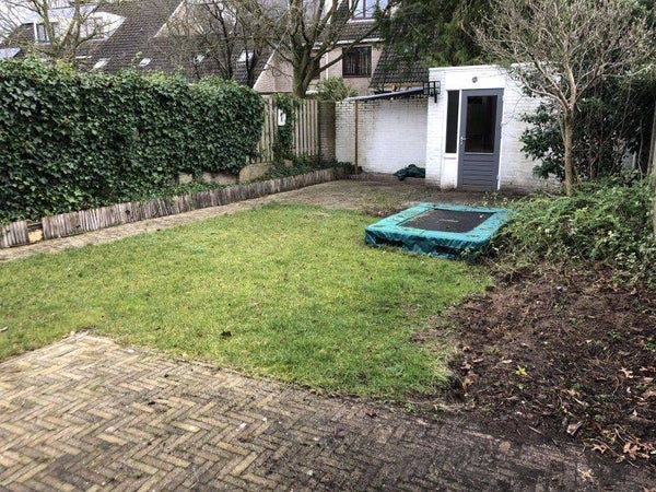 - Fraai aangelegde, nagenoeg geheel groene achtertuin voorzien van diverse borders met vaste beplanting, vrijstaande stenen berging voorzien van elektra en achterom.
