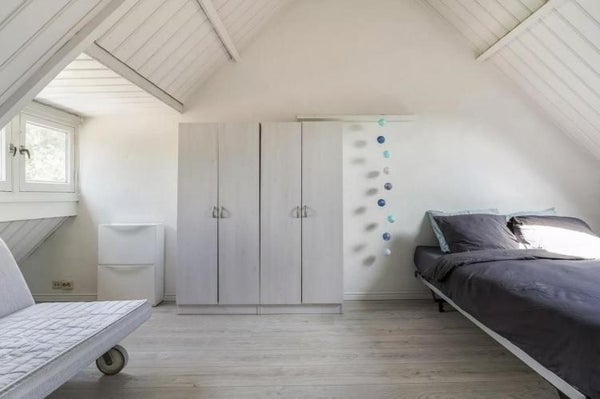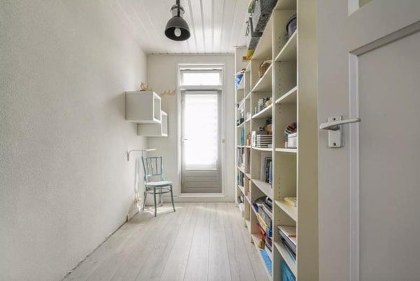 Op de eerste etage bevindt zich de eerste slaapkamer, welke ook als werkkamer gebruikt kan worden.