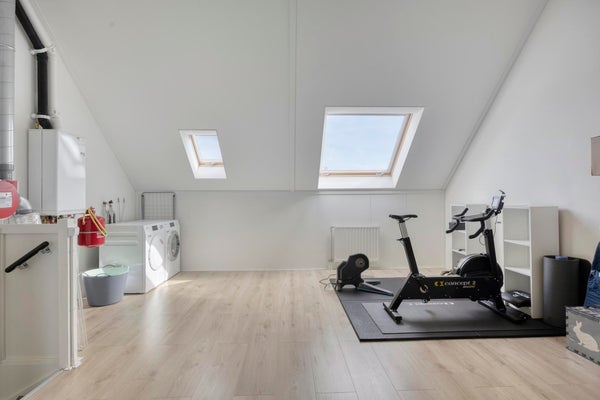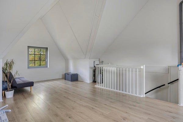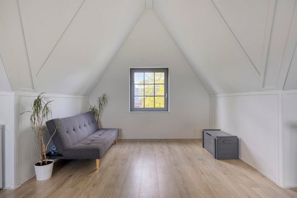 Op de zolderverdieping treft u een royale ruimte die uitstekend te gebruiken is als vierde slaapkamer, hobbykamer of thuiswerkplek – de indeling laten we graag over aan de nieuwe bewoners.