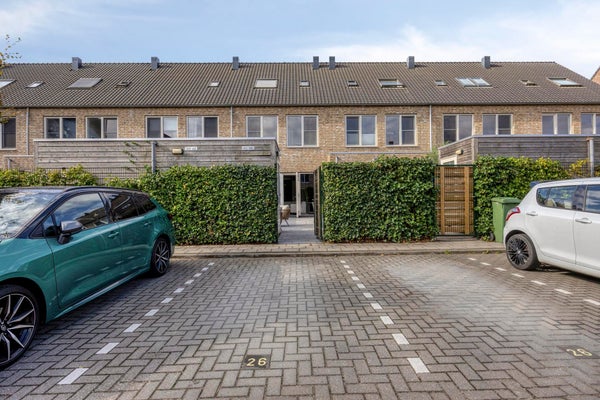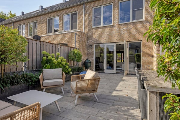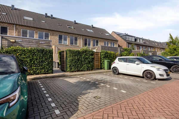 De achtertuin is onderhoudsvriendelijk aangelegd en beschikt over een ruime berging en een achterom. Achter de woning bevinden zich bovendien twee privé-parkeerplaatsen.