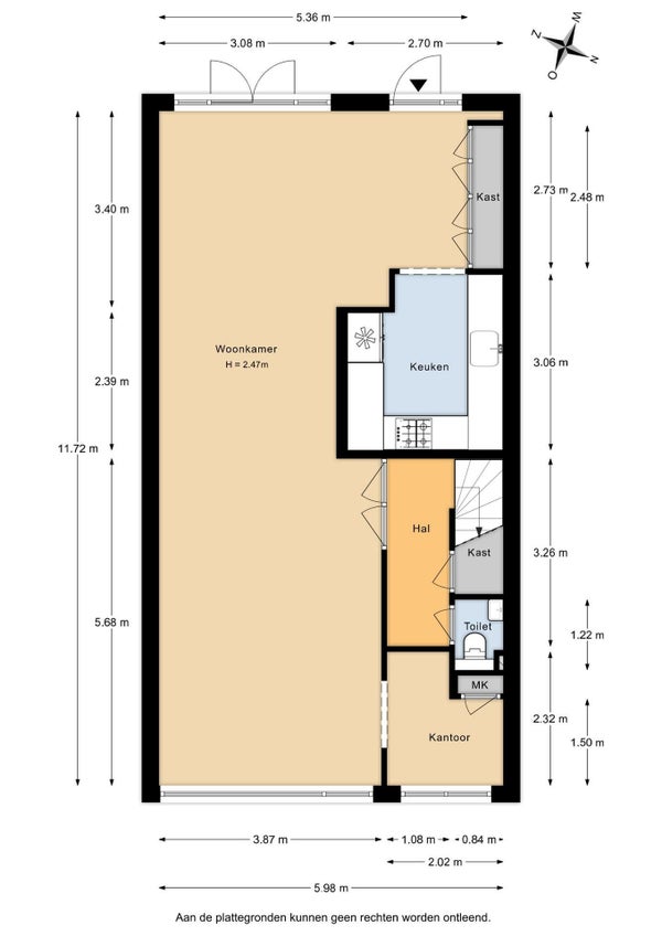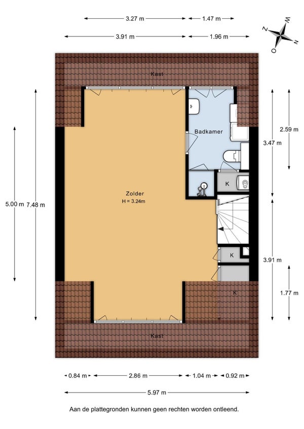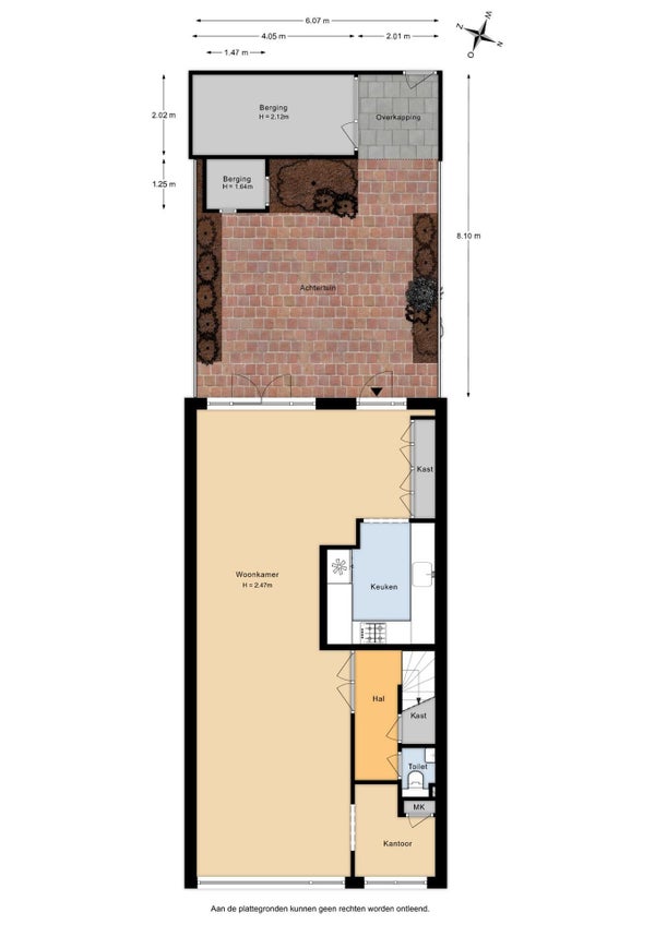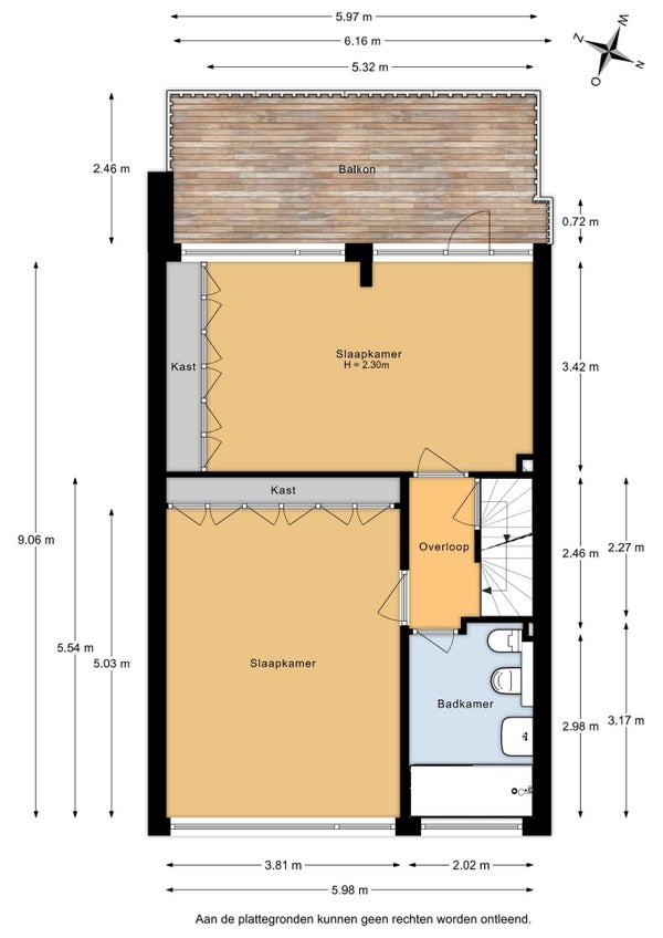 - Aanwezig (49 m², gelegen op het zuidwesten)