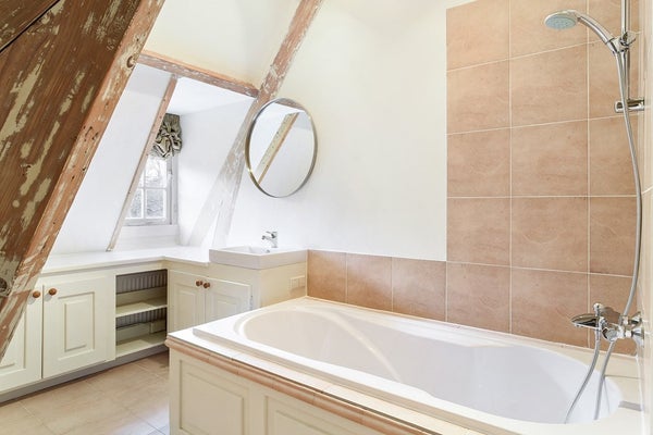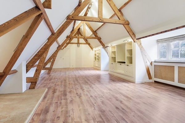 De ruime, lichtovergoten zolder bevat drie extra slaapkamers, twee badkamers en een grote multifunctionele ruimte, perfect voor gebruik als cinema, speelkamer of thuiskantoor.